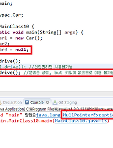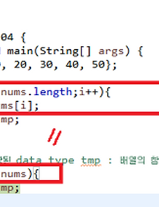 Language/Java24 [Java] java 입문 08 - 반복문 / object [Java] java 입문 08 - 반복문 / extend for문의 변형- java 5.0에 추가된 간략한 for문- for( 배열에 저장된 data type tmp : 배열의 참조값 ) 형태로 쓴다. - 확장for문 이용하여 객체 생성 후 메소드 호출하기 while문- while ( 조건 ) { } 의 형태- 조건이 true인 동안 계속 반복 수행한다.- break는 인접한 반복문 블럭을 탈출하게 한다. 클래스 생성 시 생략되는 2가지- extends Object : object는 java에서 기본적으로 제공하는 클래스이다.- default 생성자 - 따라서 참조데이터타입인 객체들은 data type으로 object type을 이용할 수 있다. 2017. 5. 17. [Java] java 입문 07 - 생성자 / static / Array / Loop [Java] java 입문 07 - 생성자 / static / Array / Loop 생성자를 이용한 객체생성과 메소드 이용- 인자로 전달받을 수 있는 생성자를 만든다.- 객체를 생성한다.- 출력하는 메소드를 생성한다.- 메인클래스에서 객체를 3개 생성하고 출력한다.- 출력할 때 메소드를 접근하는 법은 객체에 . 으로 접근한다. static 메소드의 필드 접근- static을 포함한 필드는 클래스명으로 접근이 가능하다.- static을 포함하지 않은 필드는 클래스명으로 접근할 수 없다.=> 객체를 생성해서 키값(id값)으로 접근해야 한다.- 같은 클래스 내부에서는 클래스명을 붙이지 않아도 된다. (12, 13줄) Array- dataType[ ] 형태의 데이터타입을 갖는다. EX > int[ ], dou.. 2017. 5. 16. [Java] java 입문 06 - 멤버필드 / 생성자 [Java] java 입문 06 - 멤버필드 / 생성자 멤버필드 복습: 일반멤버필드 - 선언장소 : 객체: static멤버필드 - 선언장소 : 클래스cf > 지역변수 - 선언장소 : 메소드멤버필드 이용한 Println 다른 형태로 쓰기- 멤버필드 특성을 이용하여 다른 형태로 표현할 수 있다. - out이 멤버필드이므로 데이터타입인 PrintStream을 이용하고 객체에 점 찍은 뒤 method를 호출할 수 있다. 생성자- 객체가 생성되는 시점에 초기화하는 작업- 생성자는 클래스명과 동일한 이름을 갖는다.- return 타입이 정의되있지 않다.* - 생성자는 여러개 정의가 가능하다.- 객체 생성을 다양한 방법으로 정의할 수 있다. - 자동완성으로 생성자들을 볼 수 있다.* 생성자의 다중 정의 = 생성자 오.. 2017. 5. 15. [Java] java 입문 05 - null / method in field [Java] java 입문 05 - null / method in field null- 메모리가 할당되지 않은 상태 / 빈 상태- car2 는 객체생성 준비만 했을뿐 생성이 되지 않았다. - car3는 문법적으로는 성립하나 키값(id)이 없으므로 NullPointException 오류가 발생한다. 이 땐 실질적인 값을 넣어주어야 한다. (자주 발생하는 오류이므로 숙지해놓는다) field 속 method 참조하기 (System.out.println)- 객체는 method(기능) + field(저장소) 로 이루어져 있다.- System.out.println의 out은 field값이다.- field의 dataType이 reference data type이라면 헷갈릴 수 있으므로 조심해야 한다.cf >field.. 2017. 5. 12. 이전 1 2 3 4 5 6 다음