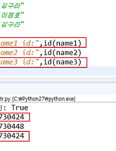 [Python] list / tuple / dict / set 이용하기 list 이용하기 1. 순서가 있다 2. 여러 type 의 데이터를 저장할 수 있다. 3. 값 변경 가능 1234567891011121314151617181920212223242526272829303132333435363738394041424344454647484950515253545556575859606162636465666768697071727374757677787980a=[1,2,3]b=[10, True, "abcd"]c=[10, 20, 30]d=a # 같은 참조값 확인!print "a id:", id(a)print "d id:", id(d) print "a[0] :", a[0]print "a[1] :", a[1]print "a..
